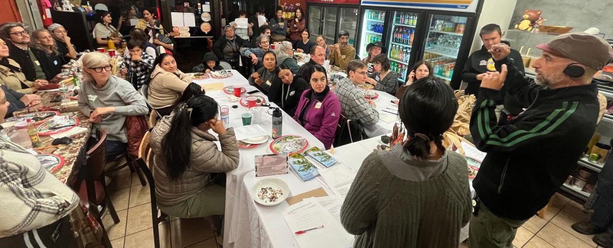 The dinners range from 30-50 attendees, and anyone with a basic level of Spanish can attend. All Latin American diasporic languages are welcomed and honored. Spanish-language learners frequently attend as a way to practice conversational Spanish and get to know their neighbors.